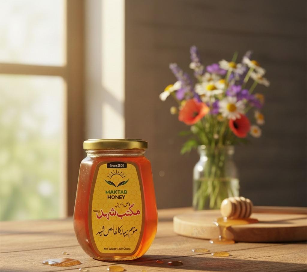 Experience the richness of nature with Maktab Honey—pure, authentic, and naturally harvested from trusted sources.